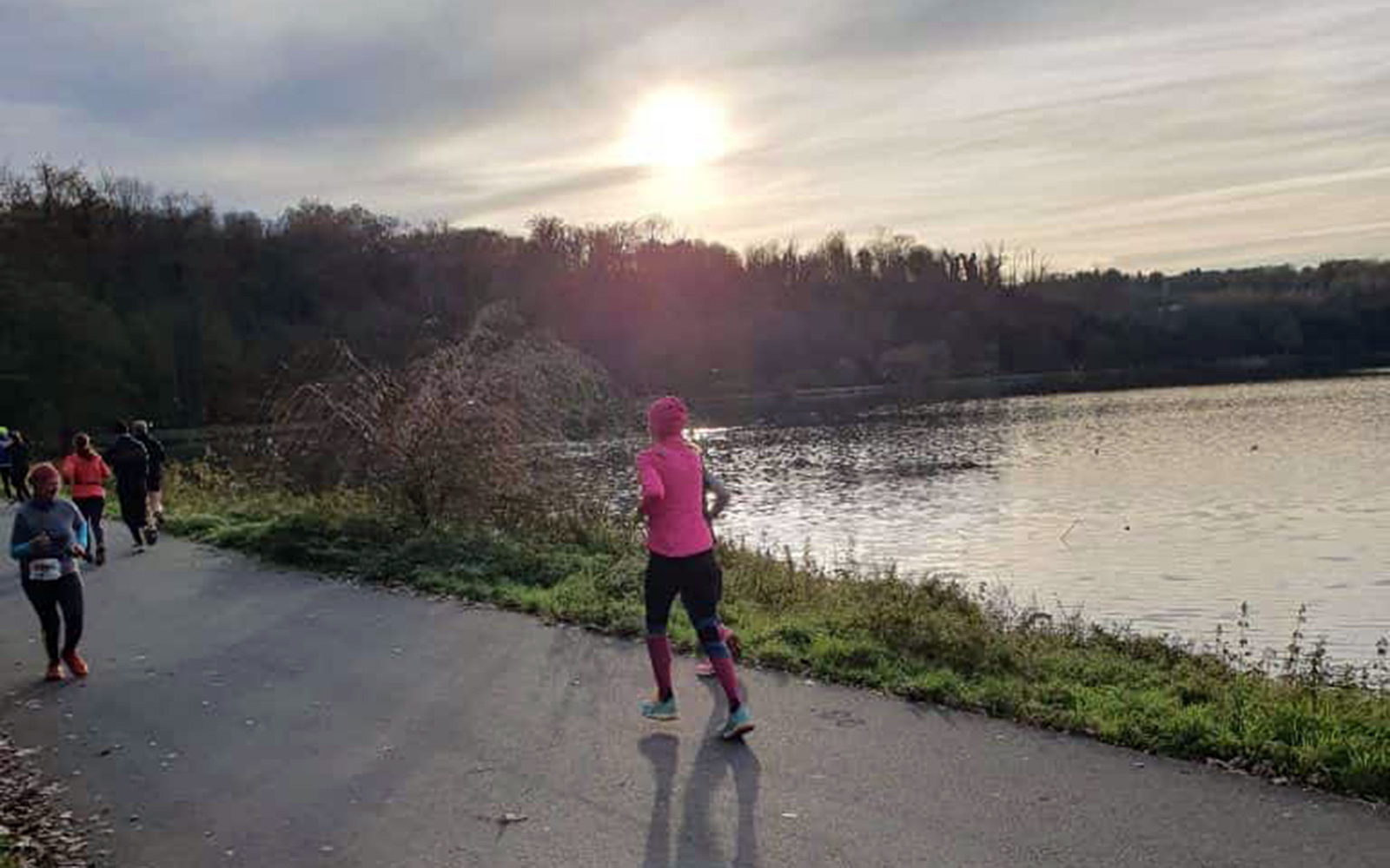 Alljährlich im November gibt es auf den Spuren des sportlichen Herrn Blumensaat einen Lauf am Baldeneysee in Essen. Also befand ich: Man muss an der Ruhr nicht immer 100 km laufen, kürzer ist auch schön. Mein „Herrenharem“ entschied sich allerdings durchwegs für die 10-km-Strecke während ich den Halbmarathon favorisierte. Es gab also keine Mitfahrgelegenheit. Aber was soll es schon: Essen ist doch nebenan, das sollte mit dem Rad kein Problem sein. Es wurde allerdings schattig, nachts minus drei Grad und außerdem ging es über die Hügel, 200 Höhenmeter waren auf den letzten sieben der 17 km angesagt. Da kann Glatteis durchaus zum Endgegner werden.